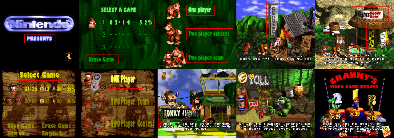 I can't seem to find the 2 fonts in DKC logo. I've searched, but all I find is that stupid "Kongtext Regular". :x What's so great about it? There's millions of fonts that look very similar to it, plus it's not a unique font at all. Anyway, the one I want the most is the "Donkey Kong" part. The closest font to it I can find is Porky's, and the difference is that the letters are curved, it doesn't have those stars in the middle of the Os, it's thinner, and it doesn't have an outline. The "Country" part is roughly a stencil font, so there's fonts that look basically the same, but not close (The closest one I found is "Cargo Crate") Does anyone know where these fonts (Or more similar ones) are?